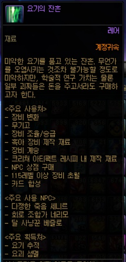 그 외에도 장비 조율/승급, 장비 계승, 장비 초월 등 골드 대신 요기의 잔흔을 사용할 수 있기 때문에 과거 '테라니움'과 비슷하게 골드 대용인 느낌이라 보시면 되겠습니다.