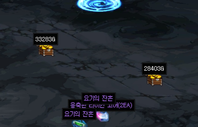 시험 삼아서 한 판 돌아보니 교환 가능한 요기의 잔흔을 볼 수 있었고, 떨어지는 골드의 양도 요기 추적의 약 10배가 되는 골드가 떨어지는 걸 볼 수 있었는데요.