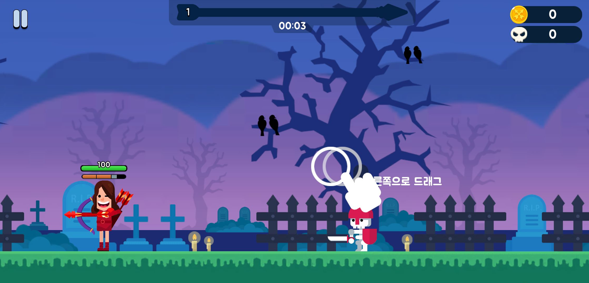 게임을 시작하게 되면 튜토리얼을 시작하게 됩니다. 드래그를 해서 조준해서 적들을 잡는 방식으로 진행됩니다.