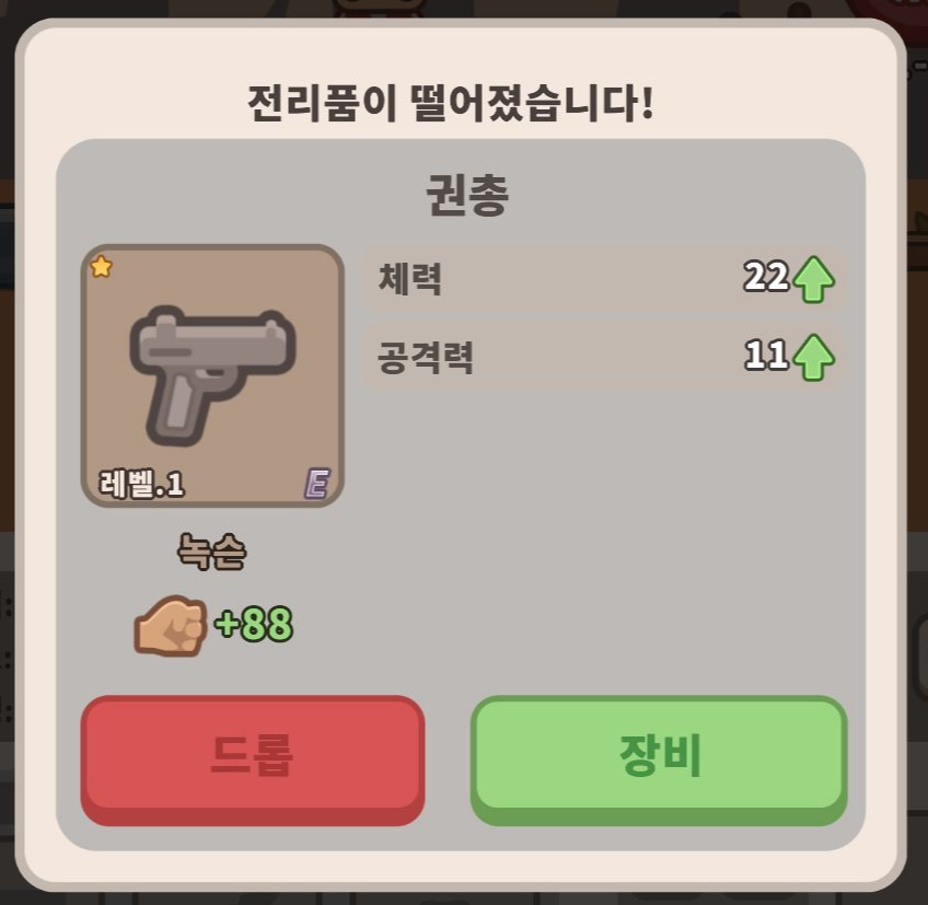 '삽'을 사용하면 물건을 노획해서 전리품을 얻을 수 있습니다. 좋은 전리품을 모아서 장착하면 전투력도 그만큼 올릴 수 있습니다.