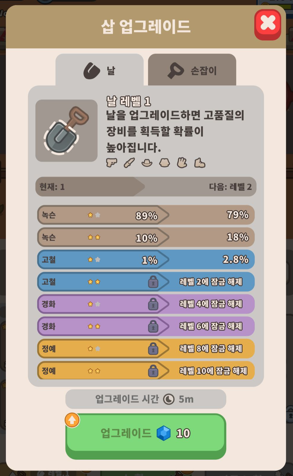 처음에는 전부 업그레이드하는 것이 크게 어렵지 않지만 가면 갈수록 어려워지는 구조입니다.