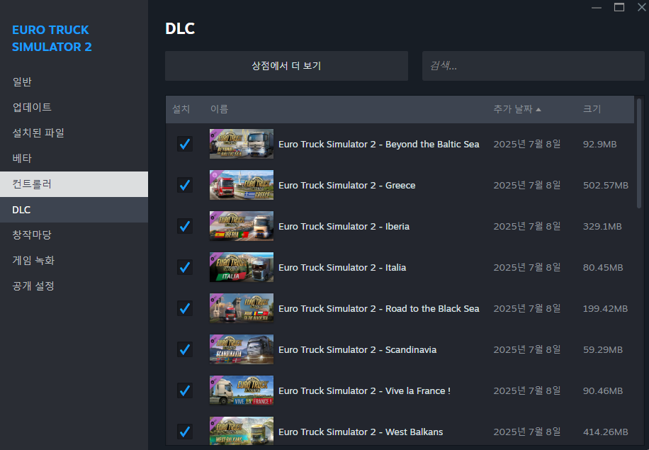 2025년 여름 세일을 통해서 현재 출시된 나머지 유로 트럭 2 맵 DLC를 전부 구매했습니다. 세일해서 전부 구매하니까 대략 6만 7천원 정도 했던 것 같네요.