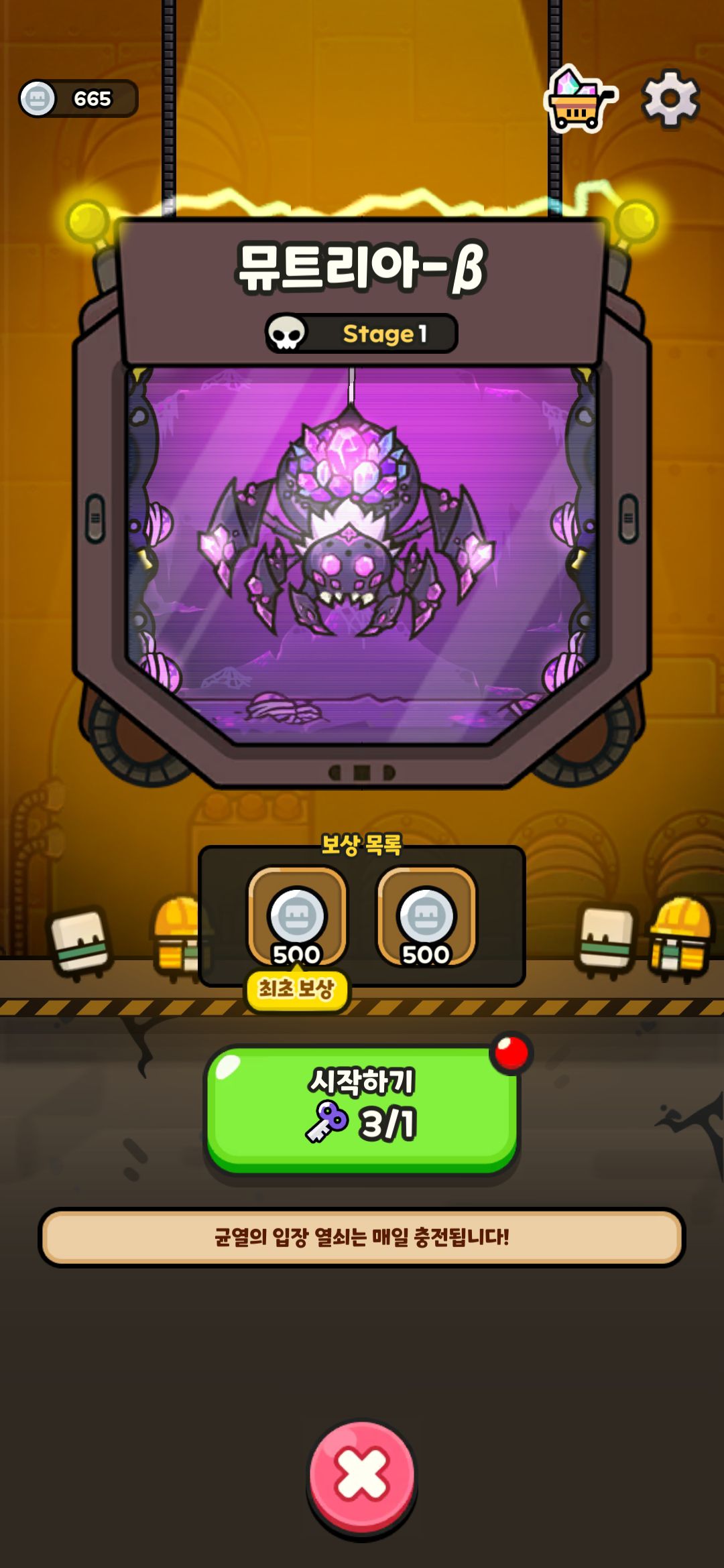 장비를 강화하기 위해서는 균열의 입장에서 파밍을 매일매일 해야 하는데요. 여기는 기존 스테이지와 다르게 최대한 땅에 떨어져서 채굴을 하는 것이 아니라 반대로 진행됩니다.