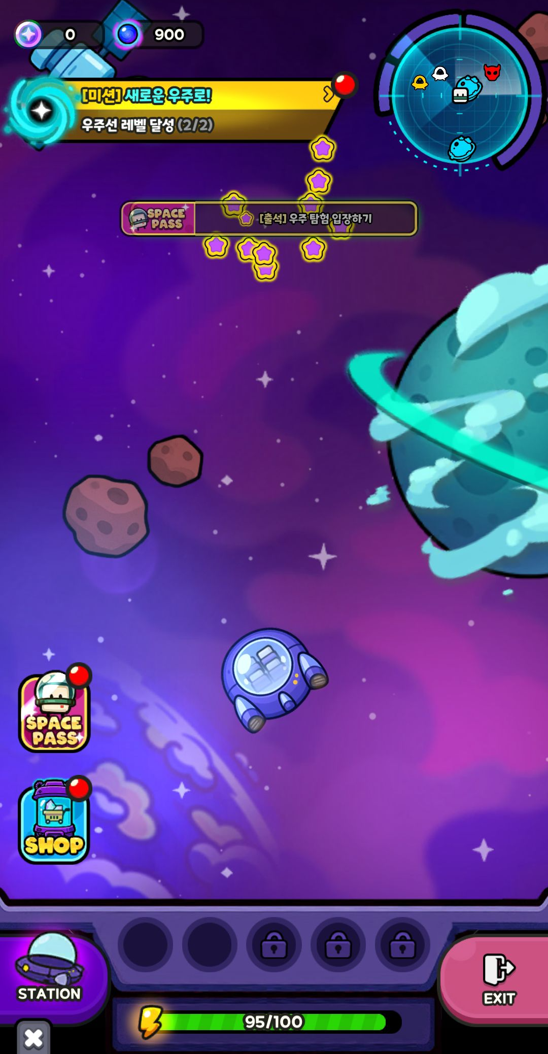 그 외에도 우주탐사를 통해서 재화를 모을 수 있는데요. 여기서 드릴에 각종 무기나 일꾼들에게 버프 등을 더 넣어줄 수 있습니다. 유의미하게 체감이 되서 우주 탐사도 꾸준하게 해야겠더라고요.
