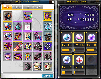 [메이플스토리] 225레벨 달성/아르카나/아르카나 길뚫기