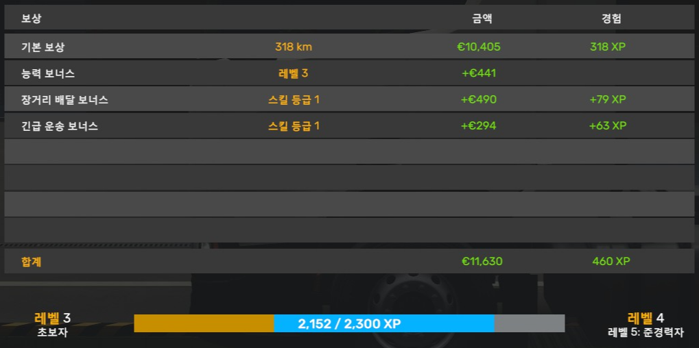 그래도 트레일러를 부착하지 않고 달리면 경험치를 줘서 겸사겸사 경험치는 버는 방법이 있긴 하더라고요.