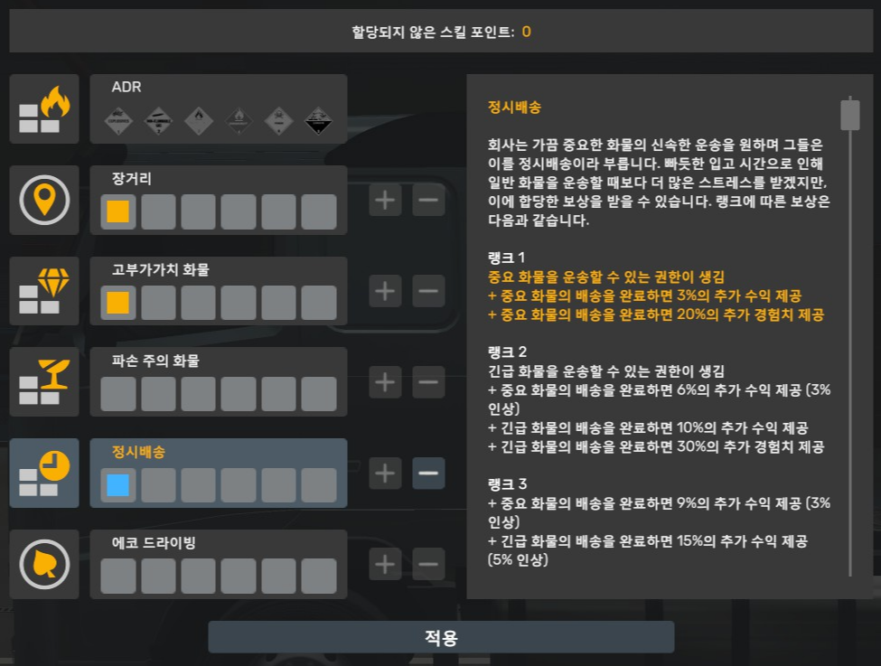 스킬을 어떻게 찍을까 고민을 했는데, 결국은 멀리 나가서 운행을 하는 게 정답인 것 같더라고요?