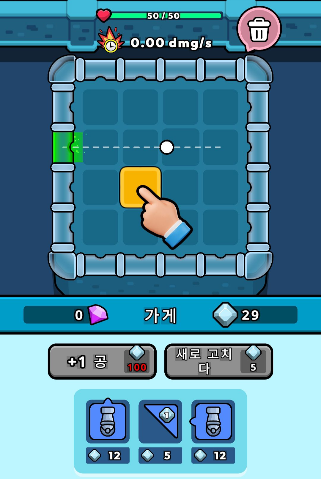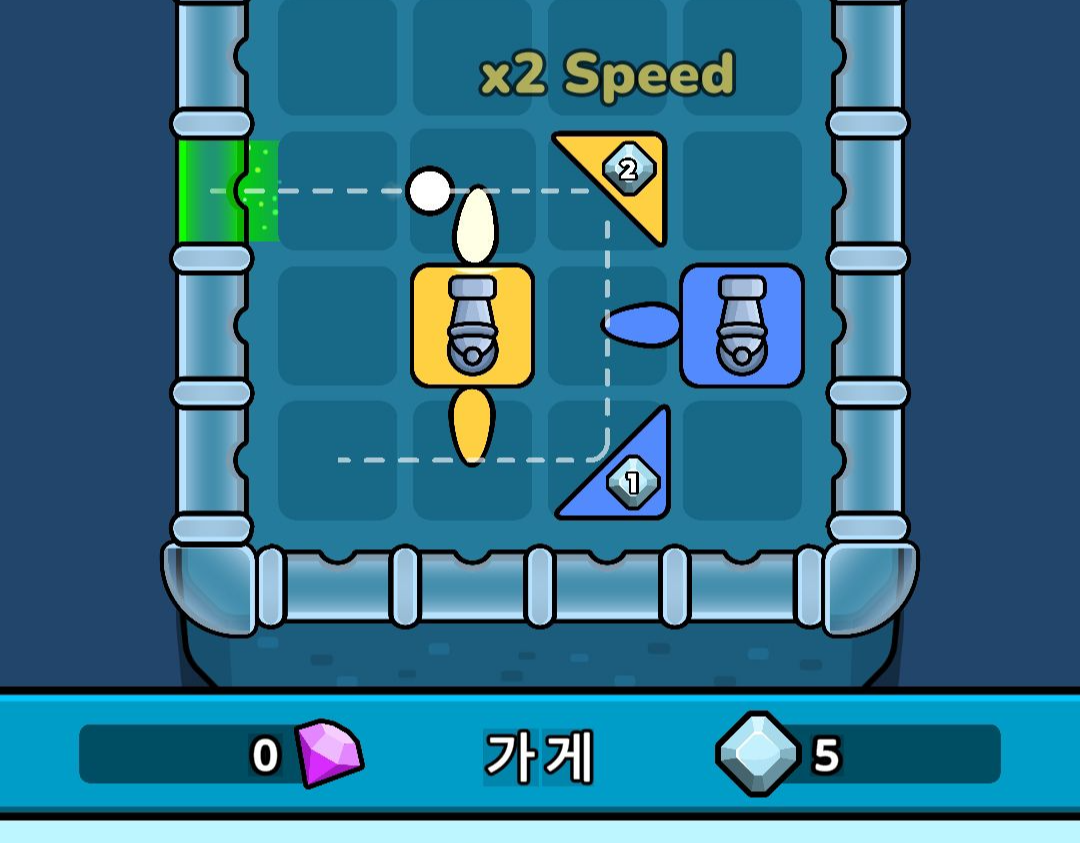 처음에 주어지는 재화를 통해서 판과 타워를 구매할 수 있는데요. 각진 판을 통해서 공을 궤도를 변경할 수 있고, 타워에 튀어나온 스위치를 공이 건드리면, 타워가 공격하는 방식입니다.