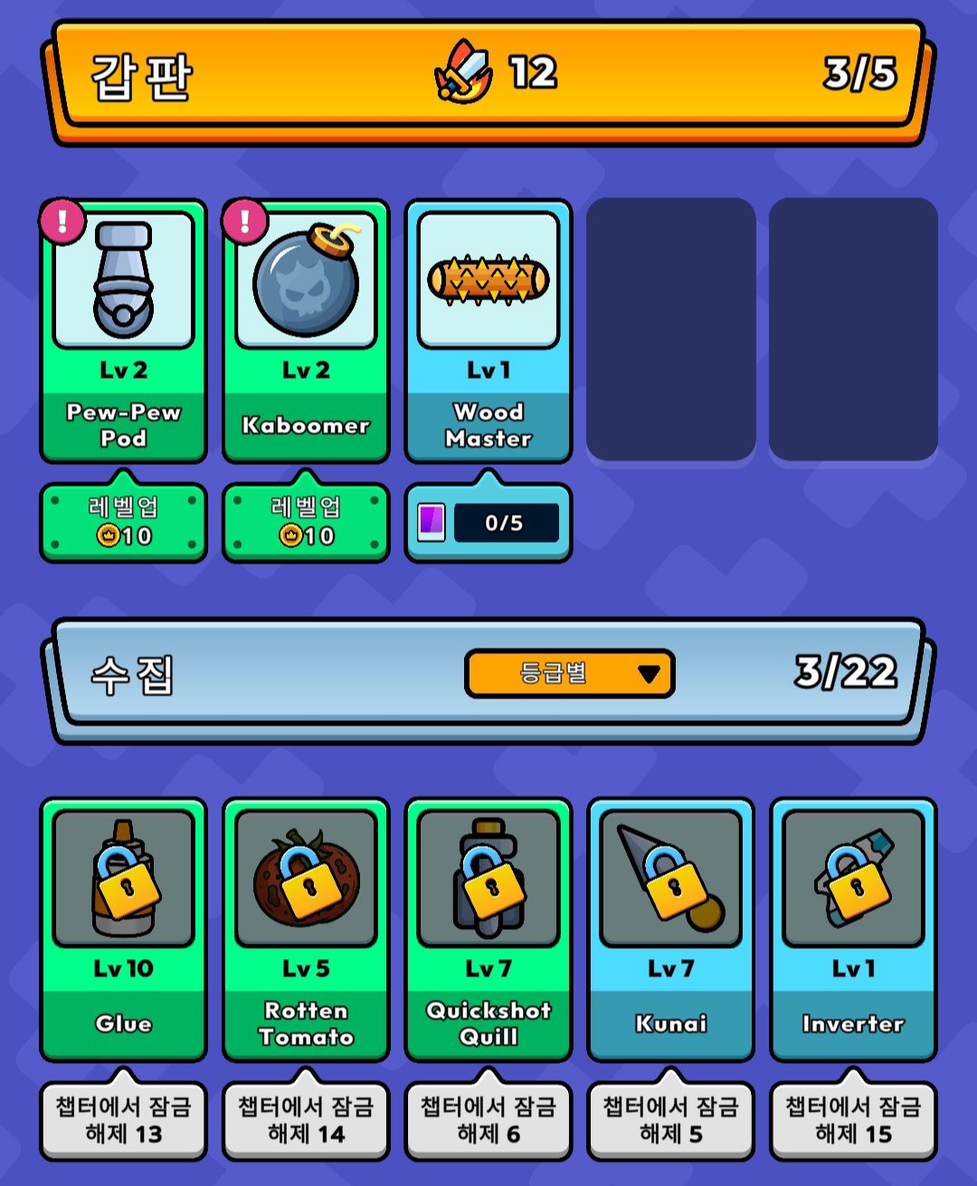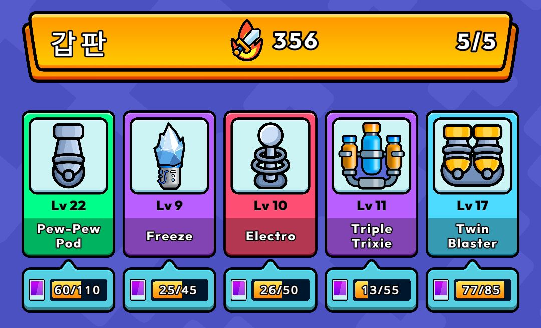 최종적으로는 카드 5개를 선택해서 플레이 해야하기 때문에 자주 사용하는 카드 위주로 업그레이드 하는 것이 중요하더라고요.