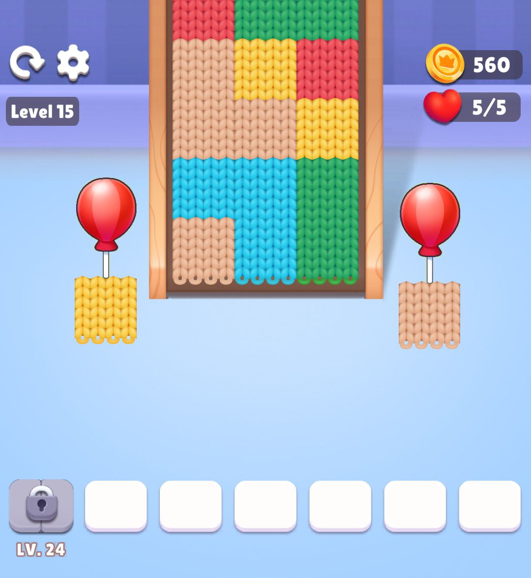 다양한 색깔로 뜨개질 한 긴 직물을 색상에 맞게 실타래로 정리하는 퍼즐 게임입니다.