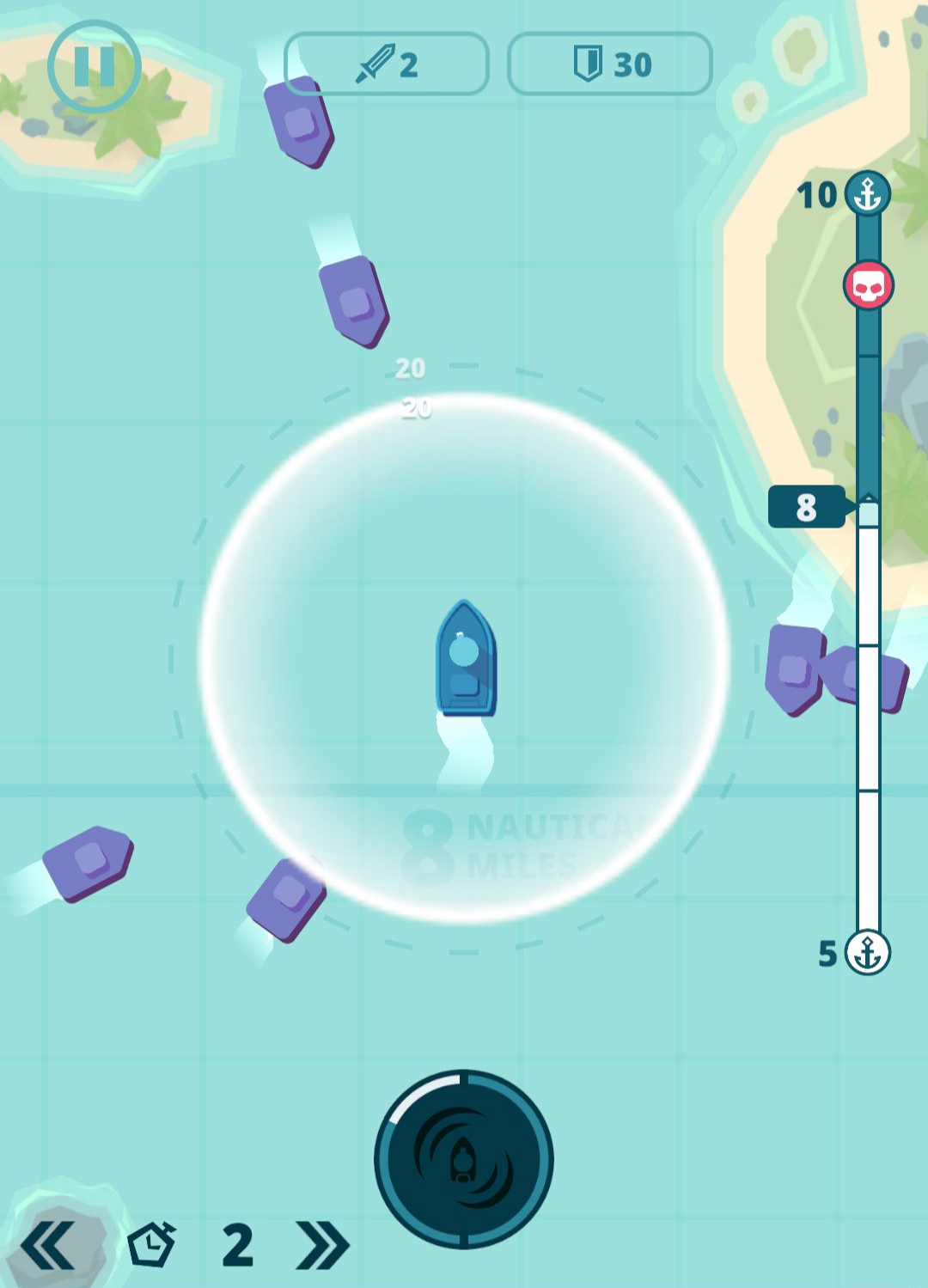 접근하는 적 함대를 밀어내는 액티브 스킬도 주어지는데요. 이런 식으로 쭉 나아가다보면 적들이 강해지게되고, 함선이 파괴되면 나아간 거리가 기록되면서 골드를 받게 되면서 끝납니다.