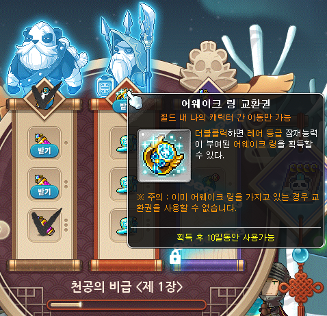 천공의 비급에 도달하면 어웨이크 링 교환권을 얻을 수 있습니다.