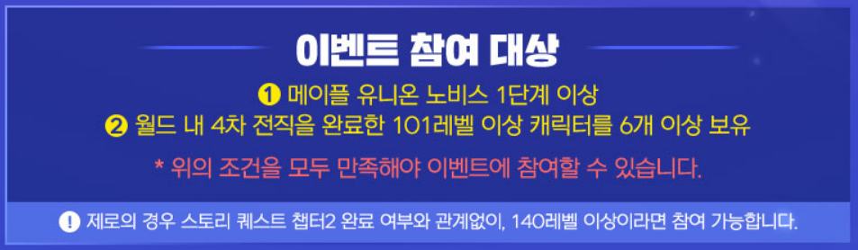유니온 노비스 1단계 이상, 4차 전직 완료한 101레벨 이상 캐릭터 6개가 있어야 참여할 수 있습니다.