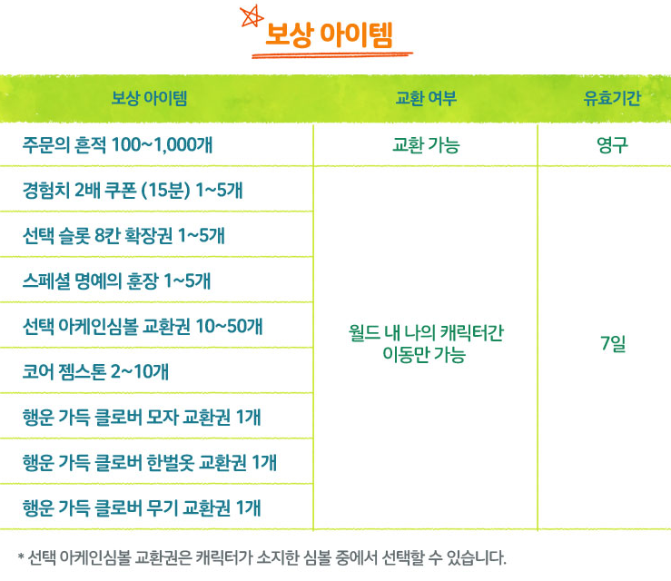 보상은 선택이 아니라 행운 상자 답게 보상도 랜덤으로 줍니다.