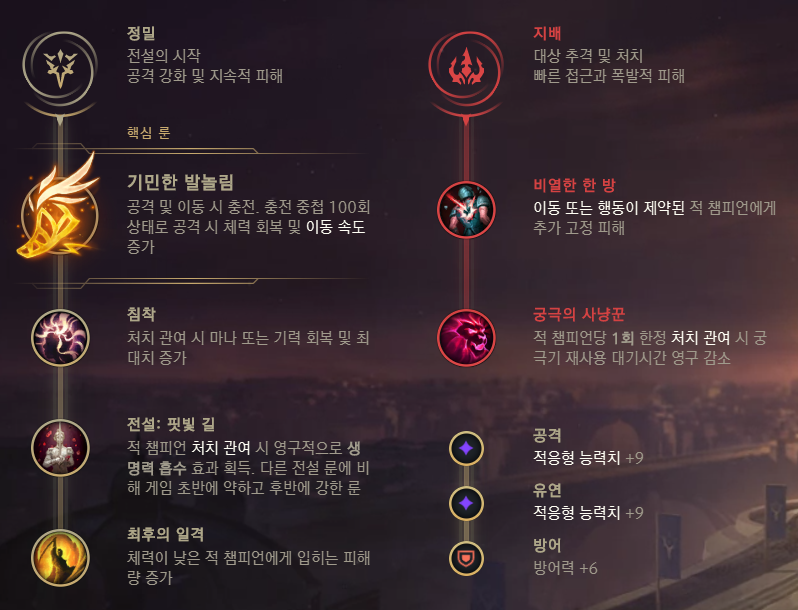 지배 룬에 궁극의 사냥꾼을 채용했습니다.