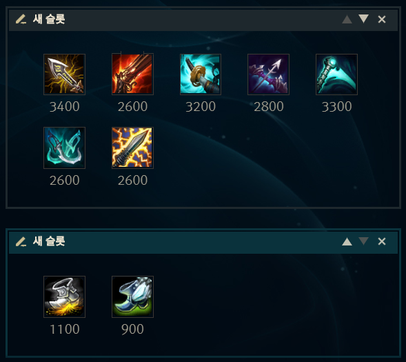 빠르게 무한의 대검, 폭풍갈퀴를 먼저 올려주기 위함입니다.