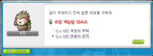 저는 이미 해당 퀘스트를 해서 아기용이 나와았는 상태인데,