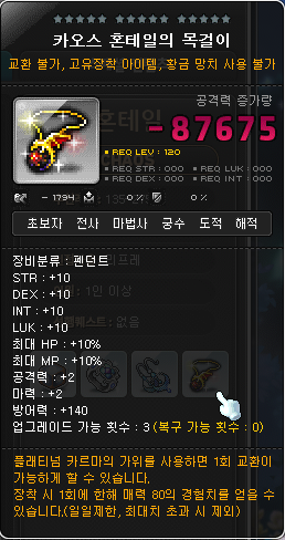 혼테일의 목걸이, 카오스 혼테일 목걸이에는 알작이라고 하는 업그레이드 방법이 있습니다.