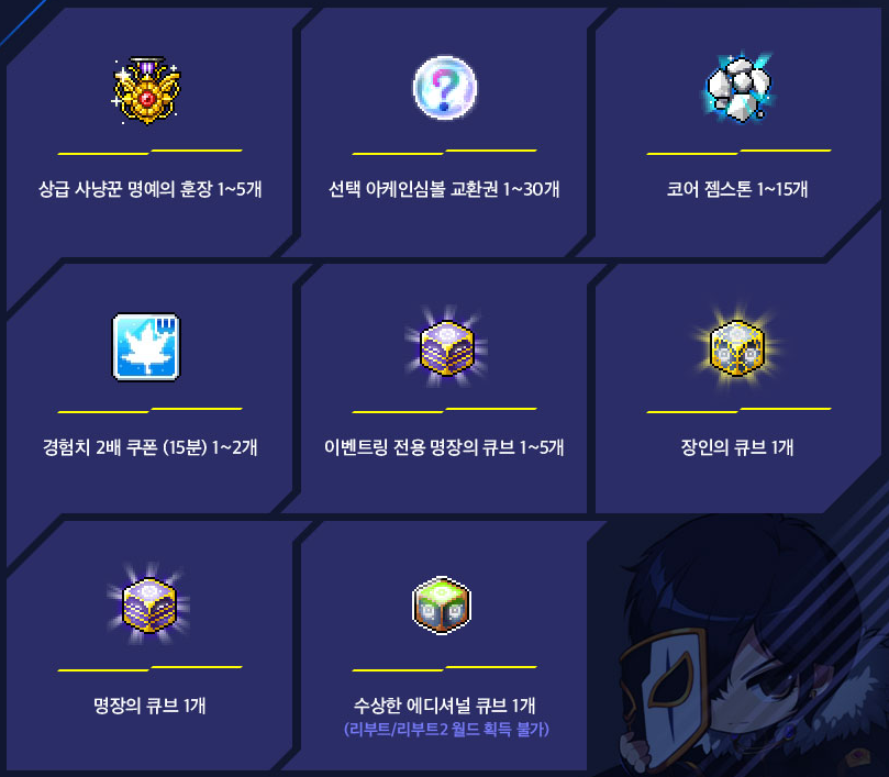 보상은 평범한 코인샵에 자주 볼법한 아이템들 입니다.