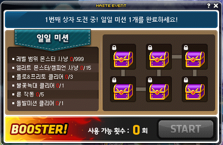 일일미션 상자를 열 때 마다 '헤이스트 부스터'를 얻을 수 있습니다.