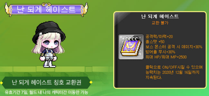 메이플에 접속해보니 이벤트 시작 당일에 벌써 '난 되게 헤이스트' 칭호를 달고 계시는 분도 있더라고요.