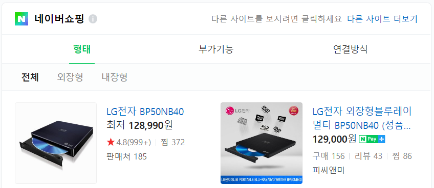 블루레이 ODD는 내장형 보다는 대부분 외장형이 많습니다.
