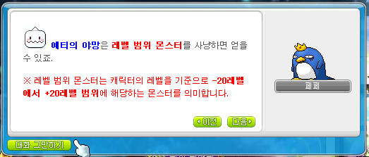 '예티의 야망'은 레벨 범위 몬스터를 사냥해서 얻을 수 있는데