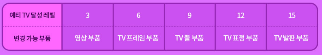 달성 레벨이 증가하면 예티 TV의 부품을 변경할 수 있는데,