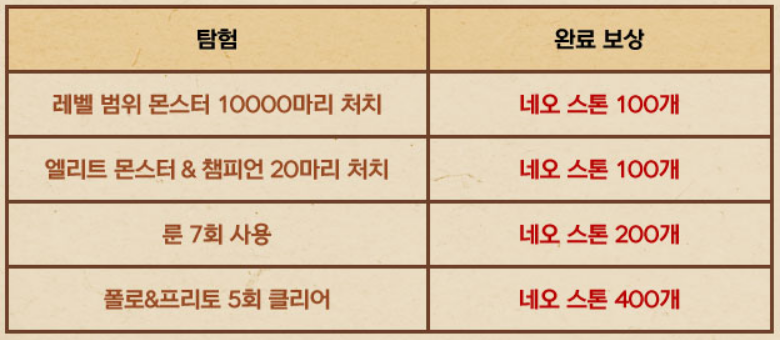 네오 스톤을 일일 최대 300개까지 수급할 수 있고 (리오의 탐험일지 제외)
