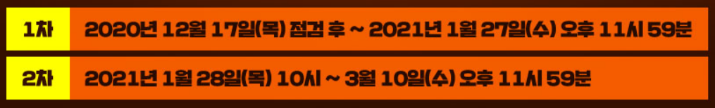 1차는 2020년 12월 17일부터 2021년 1월 27일까지고,