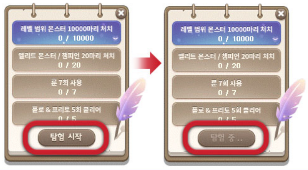 일종의 퀘스트가 주어지는데 위에서 아래로 순서대로 진행해야 합니다.