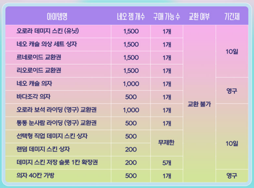 이번 NEO 업데이트는 여름방학에 비해 푸짐한 업데이트로 호평을 받고 있습니다.
