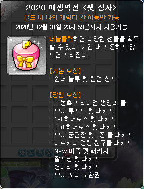 펫 상자인데 기본 보상은 펫 한마리만 주지만, 당첨 보상을 받으면 패키지로 얻을 수 있습니다.