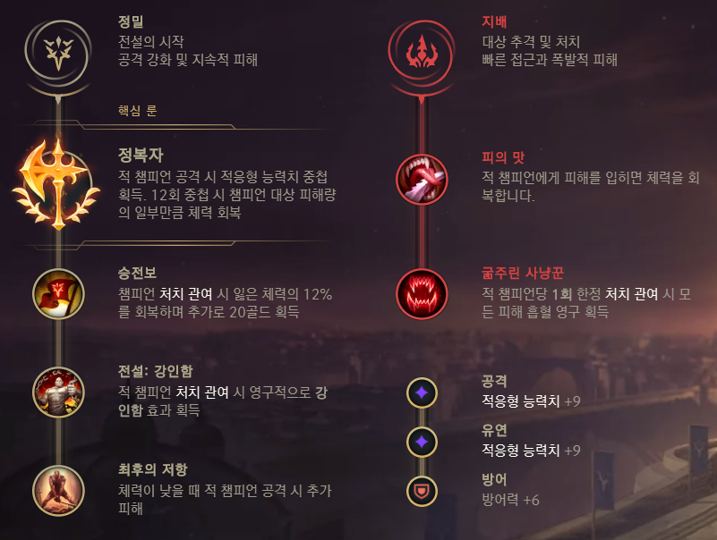 파고들어야 하는 레넥톤 특성상 버틸 수 있게 해주는 선혈포식자 조합이 상당히 괜찮습니다.