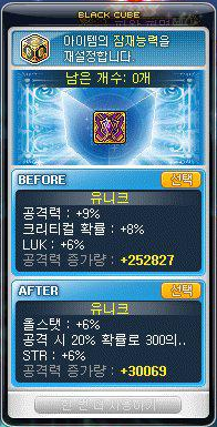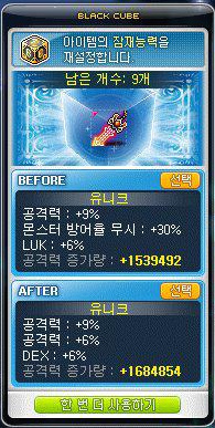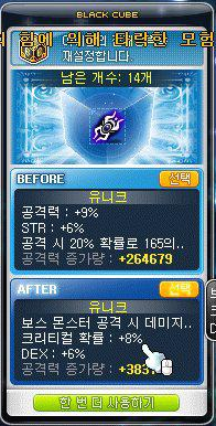 블랙큐브 5개를 사용했는데, 공격력 +15%가 나와서 이걸 가져가야하나 말아야하나 고민을 했는데
