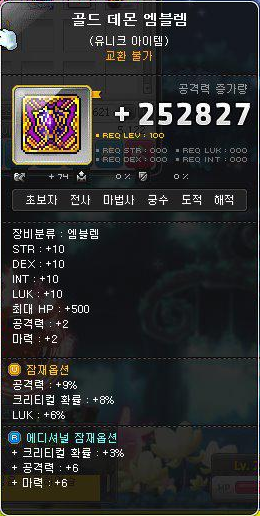 데몬어벤져는 엠블림, 보조무기 둘 다 교환불가라서 일일이 잠재옵션을 띄워야해서 많이 불편합니다.