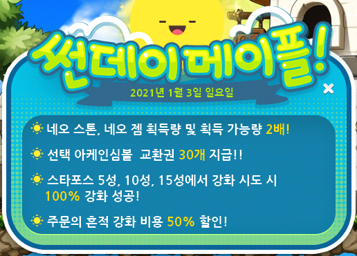 오늘 썬데이 메이플로 스타포스 강화 이벤트도 있더라고요?