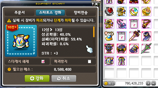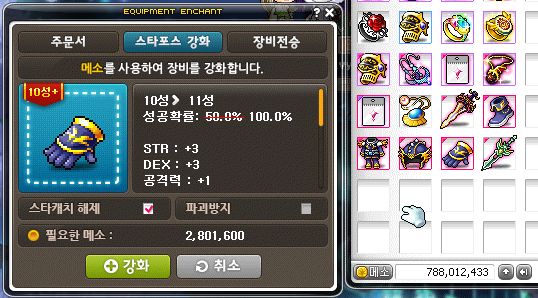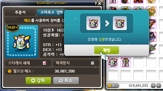 4천만 메소가 남았으니 가진 돈을 모두 다 써서 성공 시켰습니다.