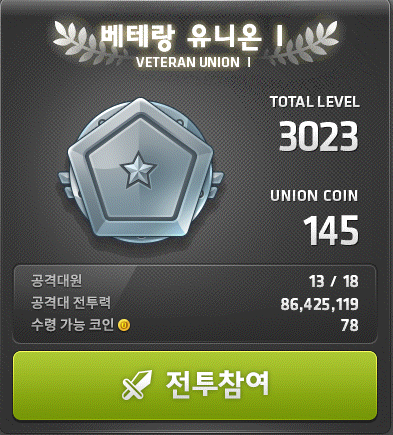 유니온 레벨 3000이상, 유니온 코인 170개가 필요합니다.