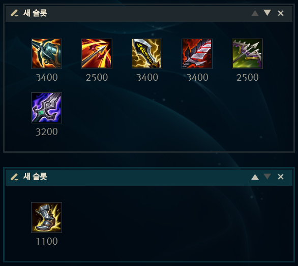 나머지는 무한의 대검, 피바라기 등 공격력 위주 아이템을 가주고, 루난의 허리케인 궁합도 좋아서 같이 가줍니다.