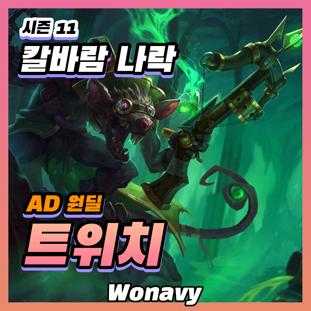 공속이 빠른 트위치 특성상 고정 데미지를 넣기 수월하기 때문에 가줍니다.