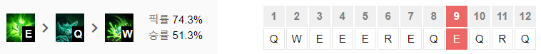 스킬은 협곡과 똑같이 E를 먼저 선마 해줍니다.