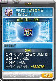 카르마 명장의 큐브에 와서야 겨우겨우 등급업에 성공했습니다.