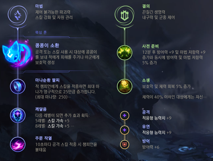 아군에게 보호막을 부여할 수 있어서 무조건 들어주는 룬입니다.